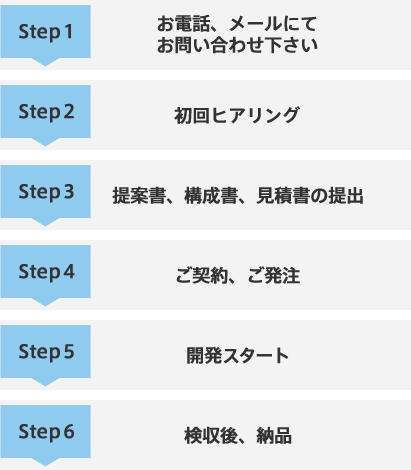 弊社にお仕事を発注いただいた際の制作準備から公開・納品までの流れです。お問い合わせから公開まで、お客様と密に連携を取りながら制作を行っていきます。こちらが基本の流れとなりますが、お客様の状況にあわせて柔軟に対応させていただきます。